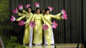 Bài tường trình cũng có nhiều hình ảnh đẹp về phong cảnh Việt Nam với vịnh Hạ long, bờ biển Nha Trang cát trắng, đồng lúa vàng … Sau đó là phần trình diễn văn nghệ của DVF với bài múa quạt, múa lân, múa đèn. Các em thướt tha trong tà áo dài, rực rỡ với áo tứ thân, hùng dũng với con lân, ông địa, đã gây ngạc nhiên và thích thú cho quan khách tham dự. Nhiều người có lẽ lần đầu tiên mới thấy chiếc áo dài Việt nam ra sao.