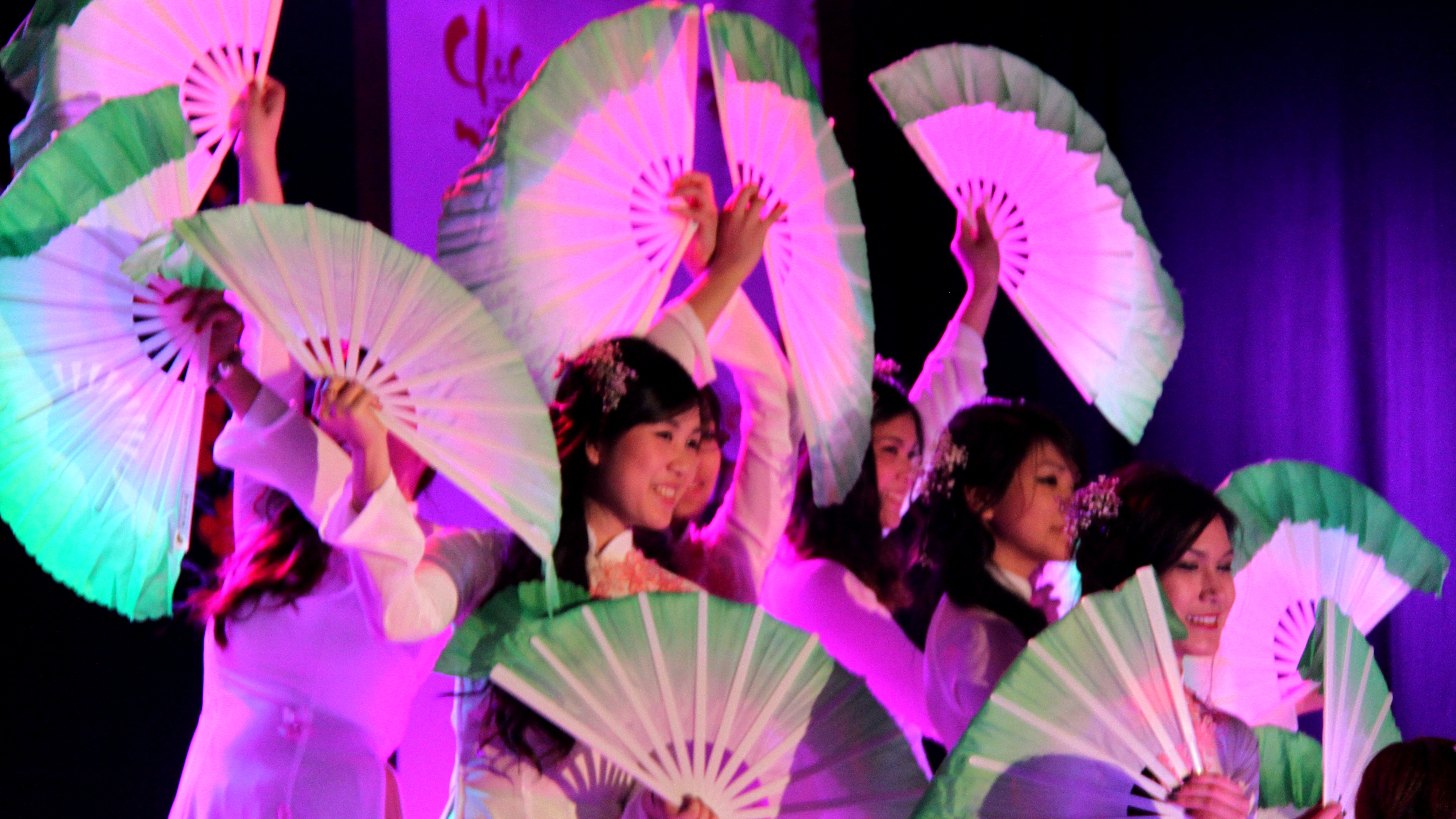 Die DVF-Tanzgruppe hat sich selbstständig gemacht, im Jargon heißt es „outsourcing“, d.h. die Mädels entschieden sich diesmal selbst wie die Choreographie auszusehen hatte, welches Kostüm in welcher Farbe, wo die Blüten auf dem Ao-Dai anzunähen waren. Nur die ganzen Unannehmlichkeiten mit den Zollbeamten überließen sie den Eltern, denn sowohl die Tanzkleider als auch die Fächer kamen als Paket direkt aus Vietnam.