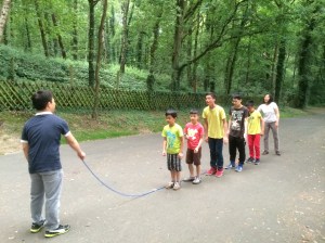 Irgendwie war es einem gelungen, herauszufinden, dass Deutschland den Einzug ins Halbfinal geschafft hat. Alle waren glücklich und die Nachtwanderung konnte beginnen. Unterwegs wurde der Webeleinstek gezeigt, ein sehr populärer und häufig verwendeter Knoten zum Festmachen an Poller oder Pfahl. Anstatt sich mit dem Knoten vertraut zu machen, nahmen die Kinder die Seile und spielten damit Seilspringen, ein beliebtes Spiel auf dem Schulhof in Vietnam. Auf dem Rückweg wurden Mathe-Aufgaben gelöst, um die Kinder von ihrem Durst abzulenken, denn wir hatten vergessen, Getränke für unterwegs mitzunehmen.