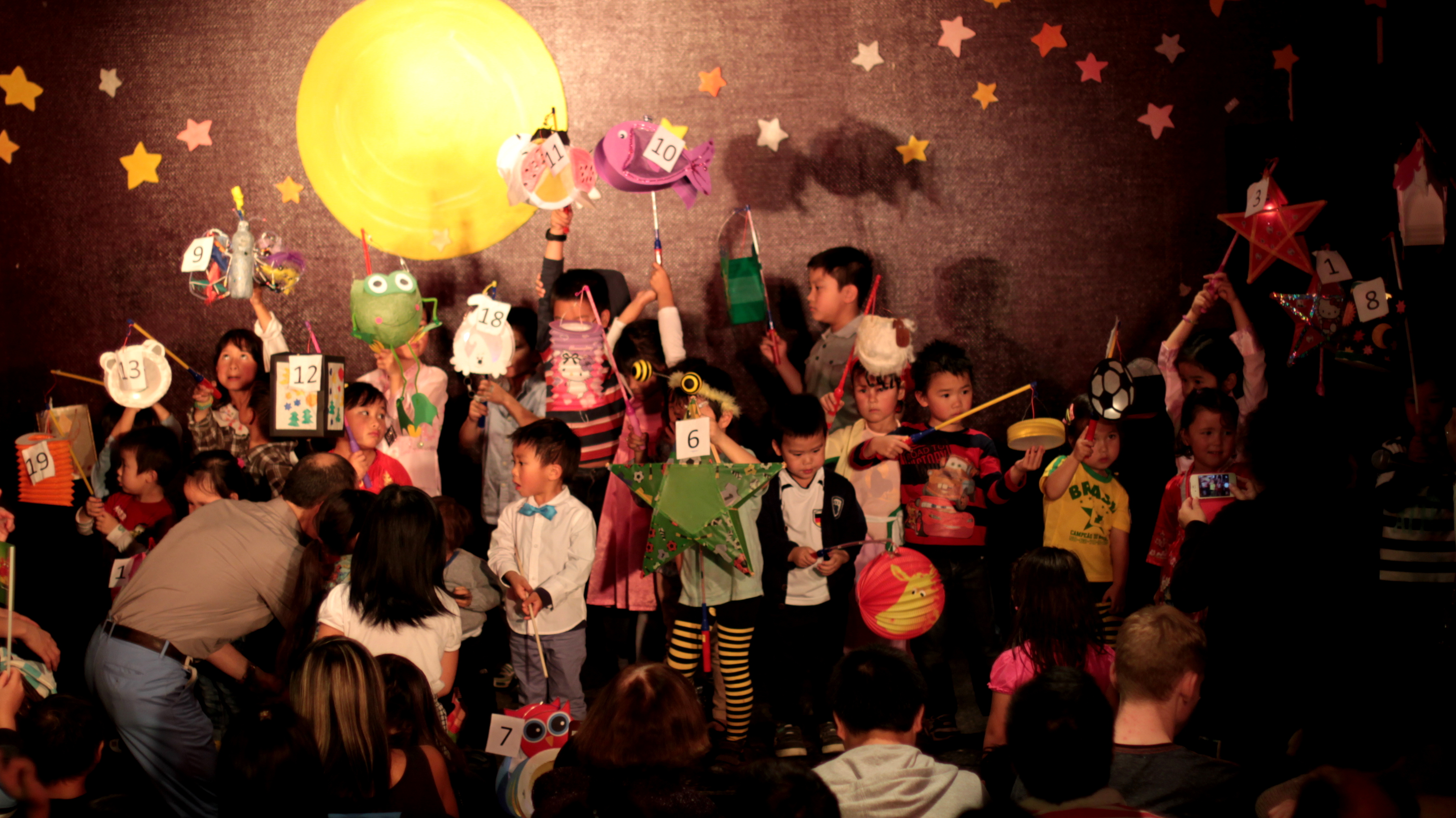 Wegen des regnerischen Wetters konnten nicht wie üblich die Outdoor-Spiele als Vorprogramm stattfinden. Umso mehr freuten sich die Kinder über die warmen, frischgebackenen Waffeln und die Eltern stürzten sich auf das Büffet mit vielen vietnamesischen Spezialitäten wie Nudelsuppe, Reisküchlein, Maiskolben, Klebreis-Sandwich, Mondkuchen …