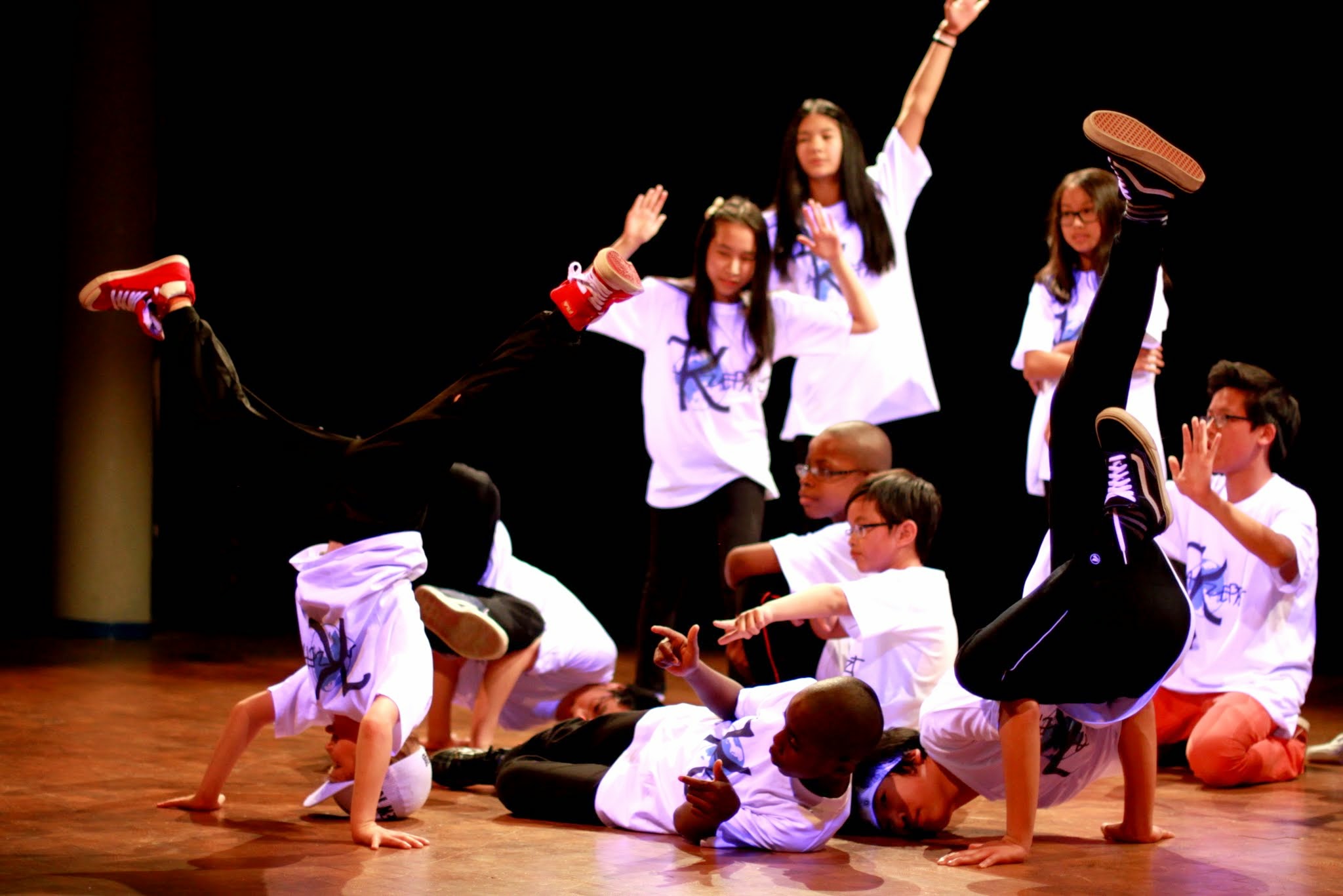 Letzten Samstag (11.04) zeigten sie als Streetdancer auf der Bühne der Europaschule in Herzogenrath ihre selbst erschaffende Choreographie mit Tanzelementen aus Europa, Afrika und Asien im Hip-Hop-Stil, eine einmalige Show besonderer Art.