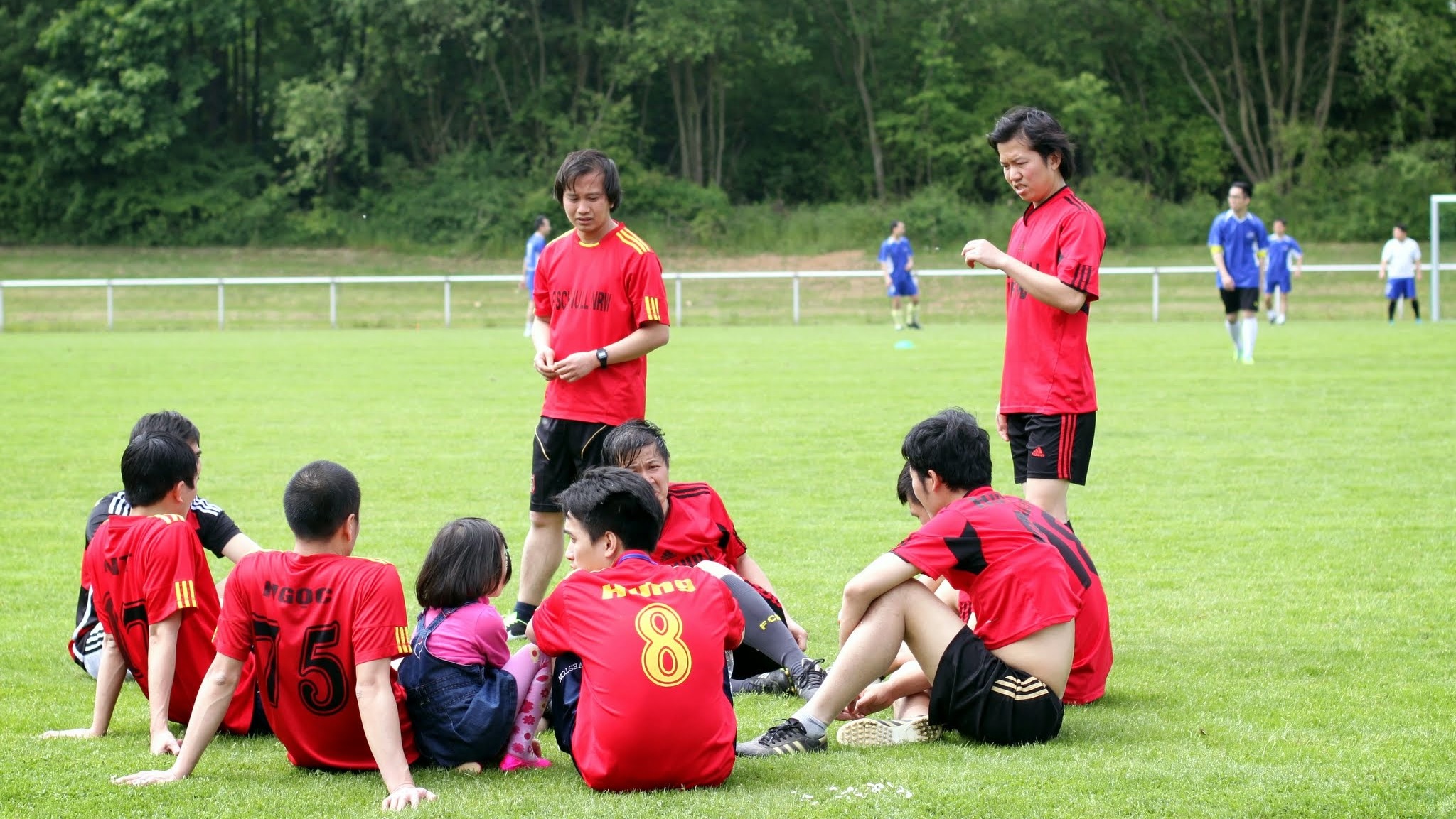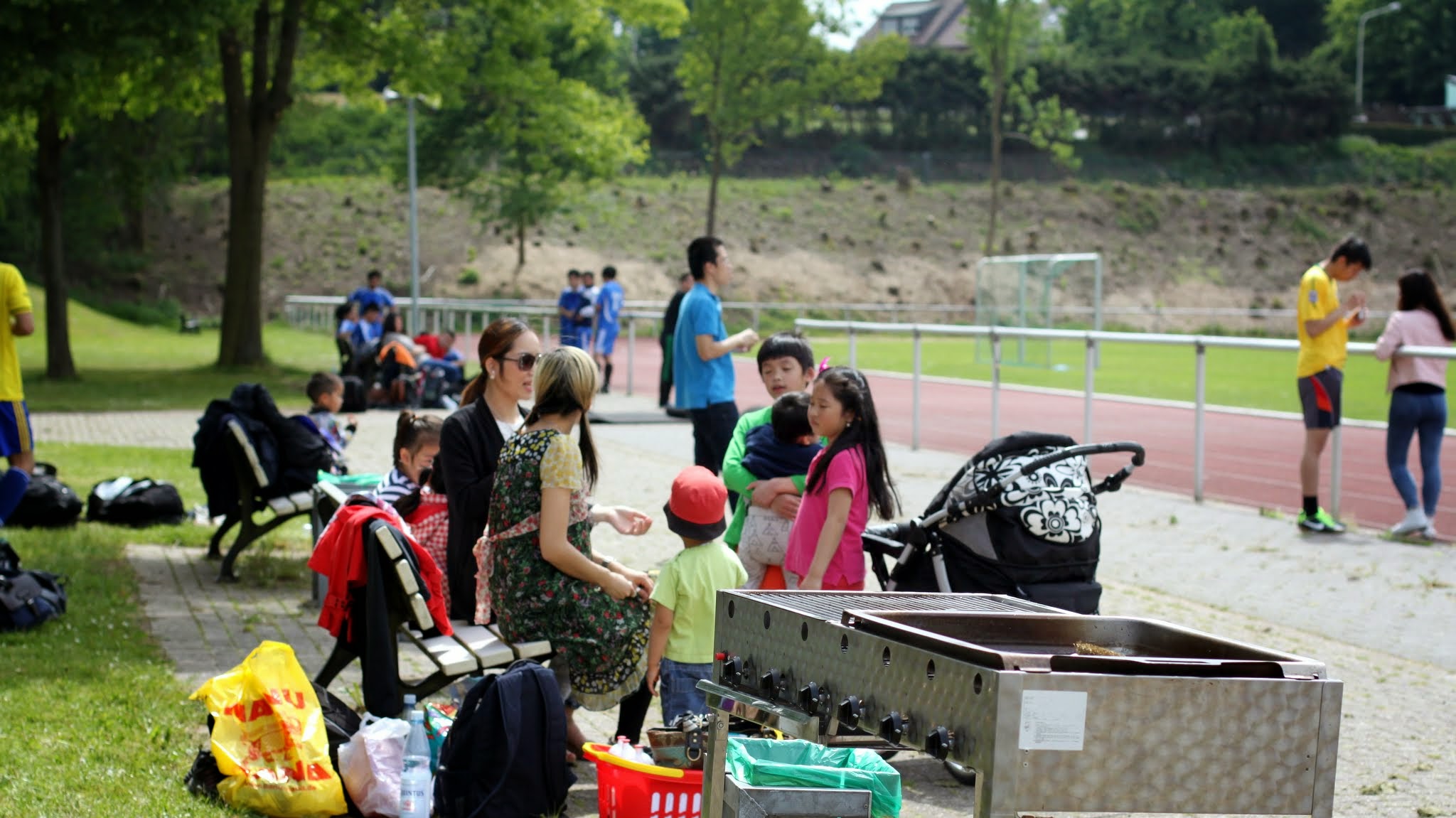 Thời tiết hôm ấy thật đẹp nhiều gia đình mang con lớn con nhỏ đến làm Picknick cổ vũ quanh sân đá banh rất đông.