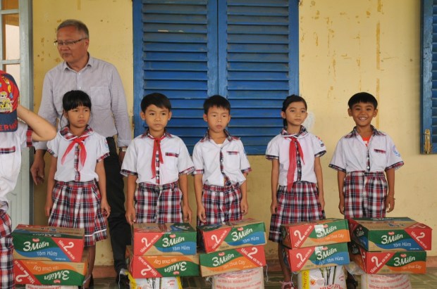 Am 16.01.2016, bei meiner Geschäftsreise nach Vietnam, Hanoi, habe ich einige Geschenke zum vietnamesischen Neujahrfest (Jahr der Affe) vom DVF und von einigen Freunden aus Aachen-Jülich den Schüler/-Innen aus der Grundschule Duy Thu, Quãng Nam, überreicht, damit sie mit ihrer Familie etwas Geld für die Besorgungen zum Neujahrfest haben.